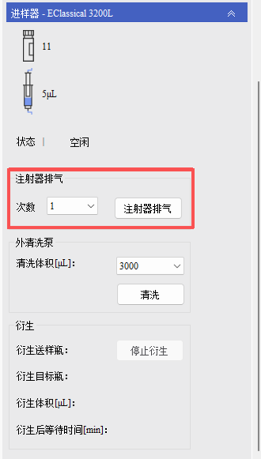 依利特Kromstation軟件“針清洗”程序界面,點擊注射器排氣即可進行進樣針和閥的清洗