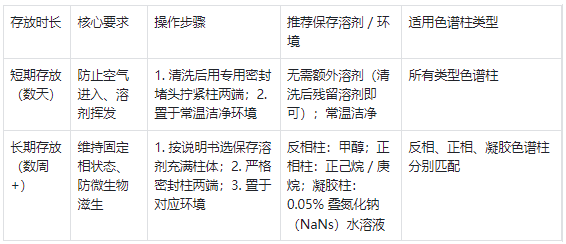 表 2.不同時長的色譜柱存放方法對比