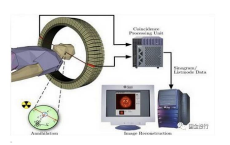 PET 裝備硬件部分由 PET 掃描架、探測器環(huán)、電子線路和計算機(jī)系統(tǒng)、圖像工作站組成。軟件部分包括圖像重建和圖像處理系統(tǒng)。