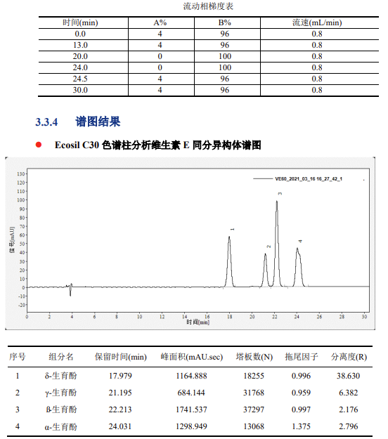 - 色譜柱:Ecosil C30 120? 3μm 4.6×250mm 或 SinoChrom Si60 5μm 4.6×150mm