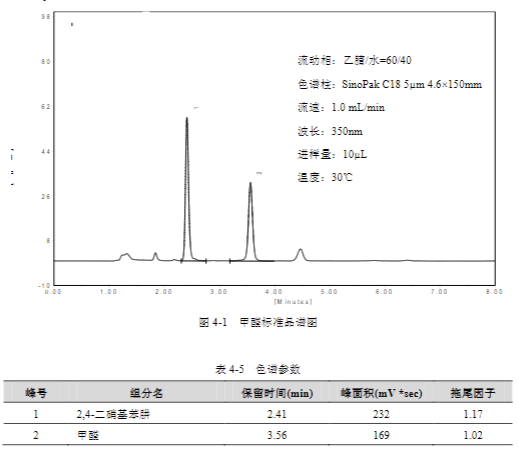 按照 4.3 中實(shí)驗(yàn)方法,對甲醛標(biāo)準(zhǔn)溶液進(jìn)行測定,結(jié)果如下: