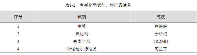 實驗過程中其它玻璃器皿還包括容量瓶 (100mL、50mL、25mL、10mL)、移液槍 (0~1000μL,0~5000μL)、移液槍槍頭 (1mL,5mL)、一次性 PVC 手套、一次性口罩、進樣針、濾膜等若干。