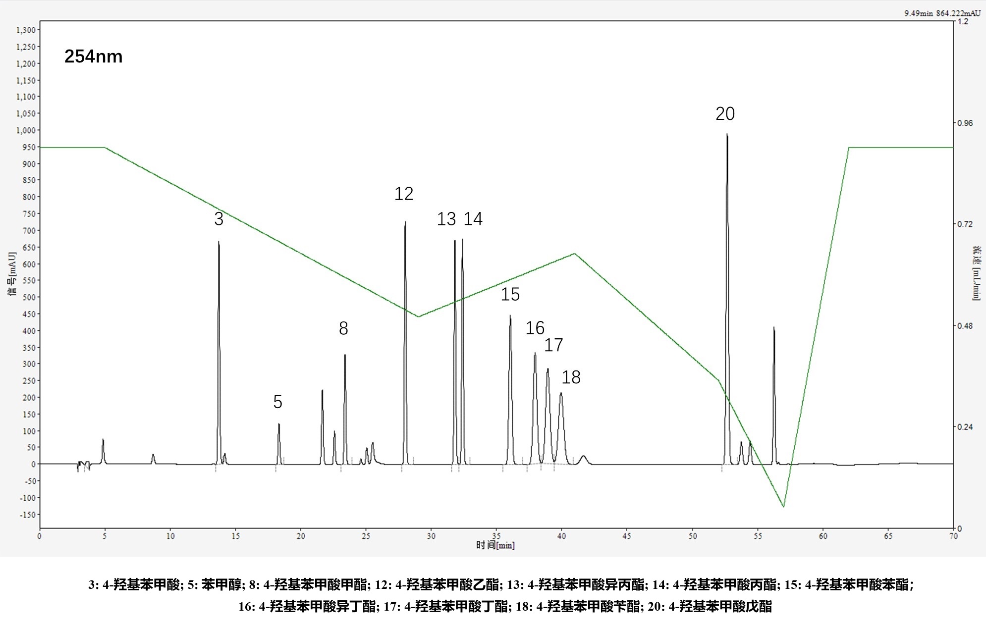 流動相A:水(0.12%磷酸) 流動相B:乙腈,梯度洗脫