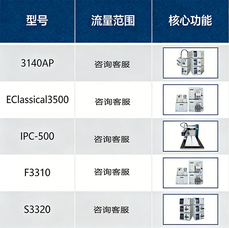 流速范圍:應涵蓋從分析到制備的寬范圍,例如0.01 mL/min至50 mL/min或更高。靈活的流速允許您使用不同內徑的色譜柱,實現(xiàn)從毫克到克級的樣品純化。