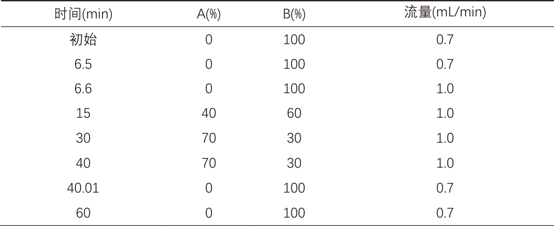 流動相組成(V/V):A:甲醇;B:0.05mol/L磷酸二氫銨水溶液(pH=3)