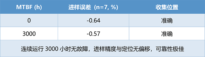 3、可靠耐用: 制備實驗往往需要長時間連續(xù)運行。團隊進行了嚴苛的3000小時無故障時間 (MTBF) 模擬測試,進樣精度依然穩(wěn)定(誤差 <±1%),收集位置未發(fā)生任何偏移,充分驗證了設備的長期穩(wěn)定性和可靠性。