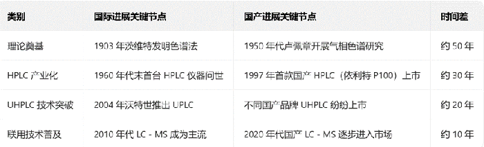 (中國與國際液相色譜發(fā)展階段對照表)