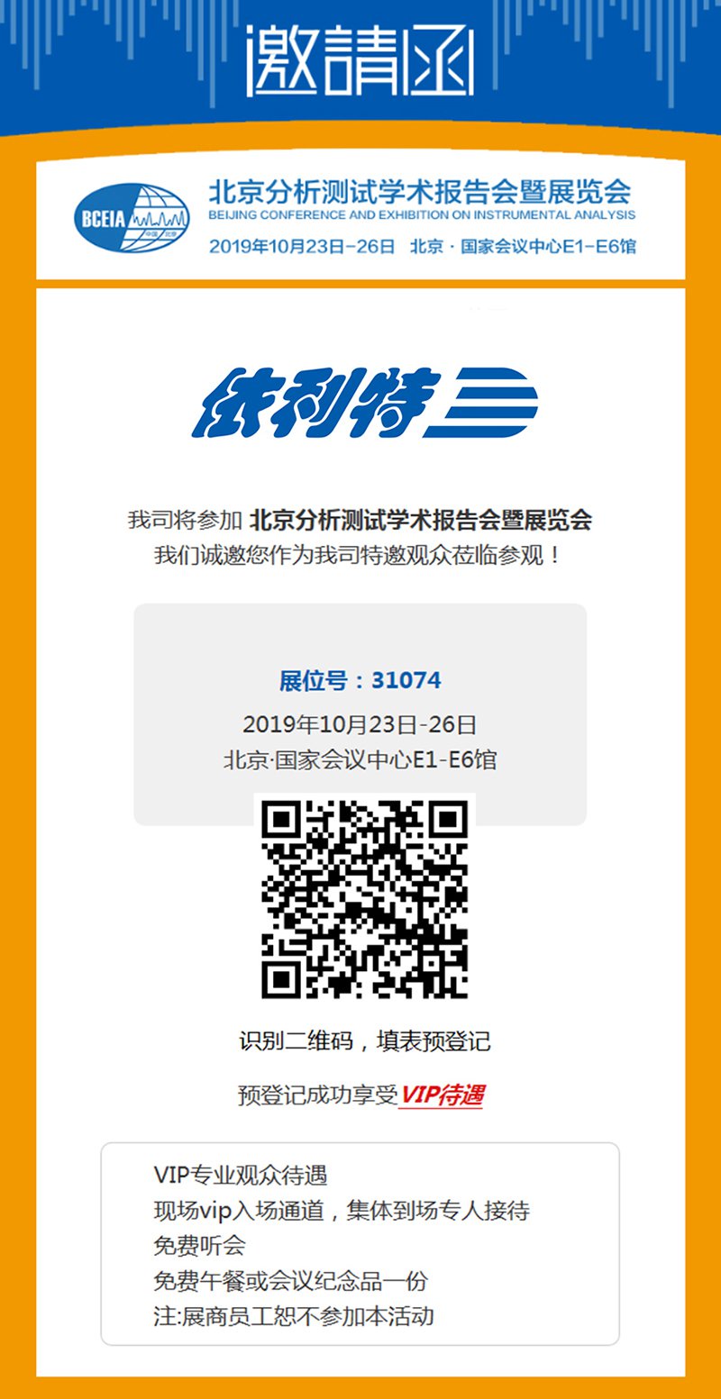 2019年10月23-26日,第十八屆北京分析測試學(xué)術(shù)報告會暨展覽會“BCEIA2019”將在北京·國家會議中心隆重開幕,展出國內(nèi)外500余家參展企業(yè)帶來的數(shù)千項新的產(chǎn)品和技術(shù),如儀器設(shè)備、試劑、軟件和分析測試服務(wù)等;同時,作為BCEIA重要組成部分的學(xué)術(shù)報告會將繼續(xù)組織國內(nèi)外著名科學(xué)家參加大會報告、10個分會報告(電子顯微鏡與材料科學(xué)、質(zhì)譜學(xué)、光譜學(xué)、色譜學(xué)、磁共振波譜學(xué)、電分析化學(xué)、生命科學(xué)、環(huán)境分析、化學(xué)計量與標(biāo)準(zhǔn)物質(zhì)、標(biāo)記免疫分析)、專題論壇、墻報、同期會議,面向世界科技前沿,圍繞新原理、新方法、新技術(shù)等多個方面進行研討和展望。