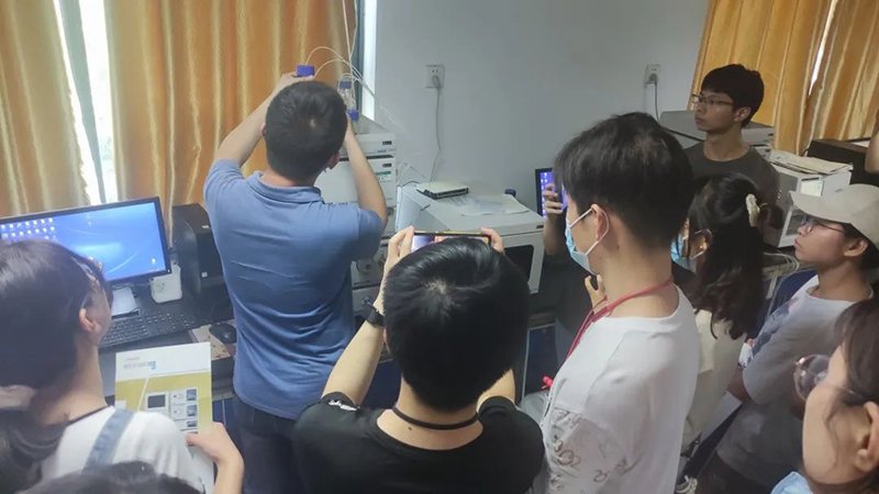 為了學校師生對液相色譜,有更深刻的了解,依利特售后工程師張博,帶領學生們來到實驗室,通過對照儀器的講解,讓學生更清晰的了解液相色譜儀的結(jié)構(gòu),以及如何在實驗中使用儀器,在講解的過程中,與同學們互動,解答同學們在使用過程中所遇到的問題,讓同學們更好的掌握液相色譜儀的使用。