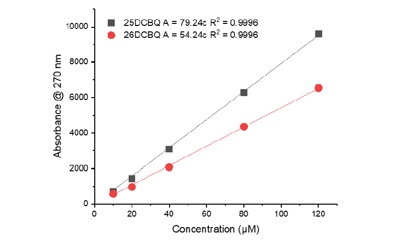 通過依利特EClassical 3100液相色譜儀對二氯苯醌(DCBQ)的含量進(jìn)行檢測,線性良好,R2為0.9996,經(jīng)過計(jì)算,二氯苯醌(DCBQ)的含量在使用親核試劑后明顯下降,清除率明顯提高。