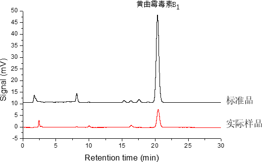 黃曲霉毒素B1是二氫呋喃氧雜萘鄰酮的衍生物,是已知的化學物質(zhì)中致癌性強的一種。黃曲霉毒素B1的急性毒性是氰化鉀的10倍,砒霜的68倍,慢性毒性可誘發(fā)癌變,致癌能力為二甲基亞硝胺的75倍,人的原發(fā)性肝癌也很可能與黃曲霉毒素有關,其毒性作用主要是對肝臟的損害,因此需對食品中的黃曲霉毒素進行檢測。
