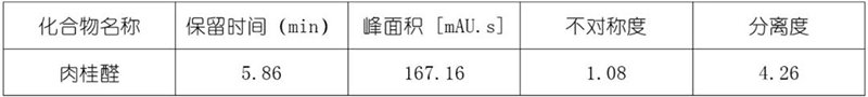 2)肉桂醛標(biāo)準(zhǔn)液的配制:取肉桂醛中間液250μL,加入3750μL乙腈,溶解混勻,過0.45μm濾膜,肉桂醛含量為50mg/L。