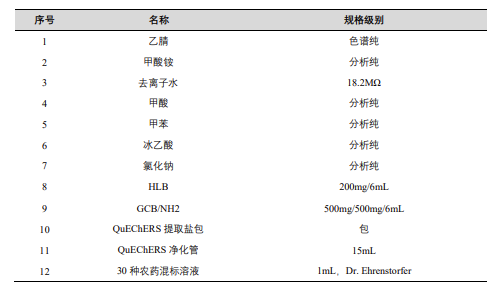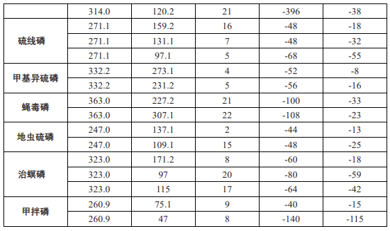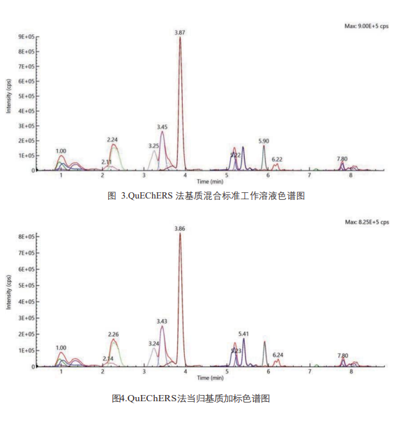 基質(zhì)混合標準工作溶液配制:取高濃度農(nóng)藥混合標準溶液,用空白樣品基質(zhì)溶液稀釋成定量限濃度的基質(zhì)混合標準工作溶液。