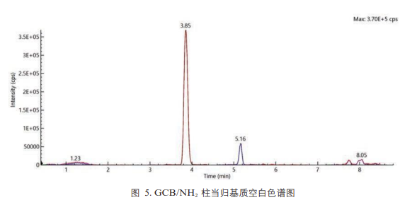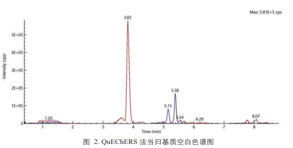 方法二:先用 10mL 乙腈 / 甲苯 = 3/1 (V/V) 活化 GCB/NH?小柱,之后量取直接提取法制備的供試液 2mL 加入到小柱中,待上樣完畢,用 20mL 乙腈 / 甲苯 = 3/1 (V/V) 進行洗脫,收集上樣液和洗脫液,40℃旋蒸濃縮至近干,用乙腈轉(zhuǎn)移并稀釋至 2mL,混勻,取上清液 1mL,加入 0.3mL 水,過 0.22μm 濾膜即得。