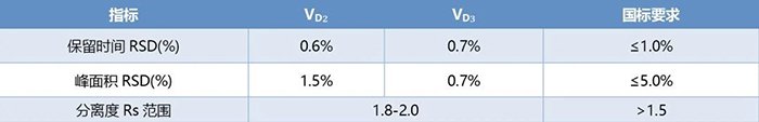 2、保留時間與峰面積 RSD 均低于國標限值,重復(fù)性穩(wěn)定。