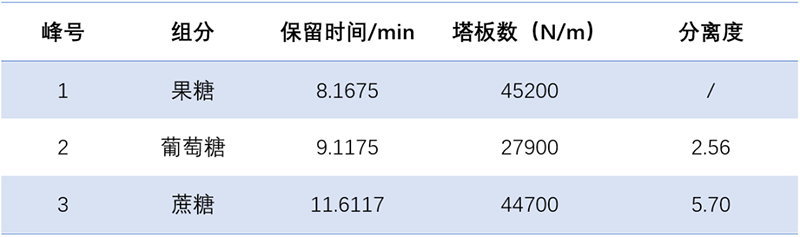我們知道,基本上所有的水果都以蔗糖、葡萄糖、果糖這三種糖類為主,只是占比不同,吃起來的口感有差別。相比葡糖糖和果糖,蔗糖甜度較高。若水果中蔗糖含量越大,水果吃起來就會越甜。荔枝是一種熱帶水果,相比其他水果,口感甘甜,依利特用自產的液相色譜儀和氨基糖柱,分析了荔枝中不同糖分的含量。