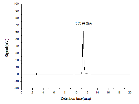 馬兜鈴酸A標準工作液:用流動相配制濃度分別為1.0μg/mL、5.0μg/mL、10.0μg/mL、20.0μg/mL、50.0μg/mL的馬兜鈴酸A標準工作液。