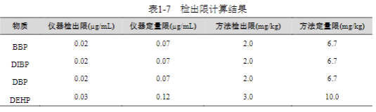 由表 1-8 知:檢測樣品中含鄰苯二甲酸二異丁酯 (DIBP) 125mg/kg,鄰苯二甲酸二 - 2 - 乙基己酯 (DEHP) 4290mg/kg,鄰苯二甲酸丁芐酯 (BBP) 和鄰苯二甲酸二丁酯 (DBP) 未檢出。