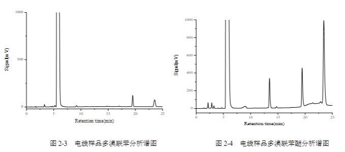 取某廠家生產(chǎn)的電線樣品,按照2.3中所述方法進行前處理及分析,所得譜圖如下所示: