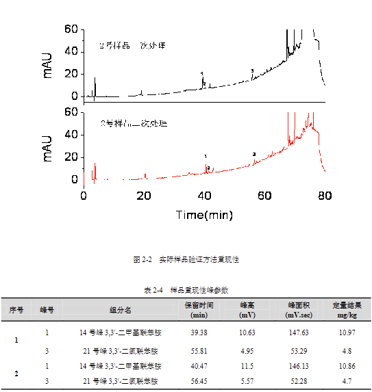 樣品測(cè)試過程中,應(yīng)保證其芳香胺含量在該線性范圍之內(nèi),若超出該范圍,需將樣品進(jìn)一步稀釋或濃縮。