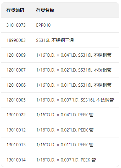 通過 PEEK 管 / SS316L 不銹鋼管路分流比數(shù)學(xué)表達(dá)式計(jì)算,可選取內(nèi)徑為 0.04”I.D.、長為 16cm 的 PEEK 管作為支路 1;內(nèi)徑為 0.02”I.D.、長為 99cm 的 PEEK 管作為支路 2,則支路 2 的流量即為 10μL/min。