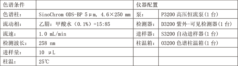 依利特新款的EClassical 3200液相色譜儀搭配經(jīng)典的SinoChrom ODS-BP色譜柱,對芒果葉中芒果苷成分進行分析,柱效高,峰形好,滿足定性定量分析的需求。
