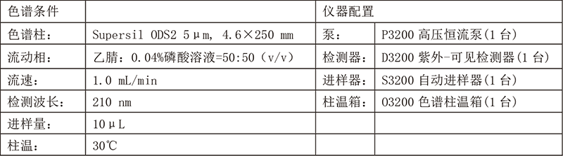 依利特新款的EClassical 3200液相色譜儀搭配經(jīng)典的Supersil ODS2色譜柱,對四味土木香散中的異土木香內(nèi)酯成分進(jìn)行分析,柱效高,分離度好,滿足定性定量分析的需求。