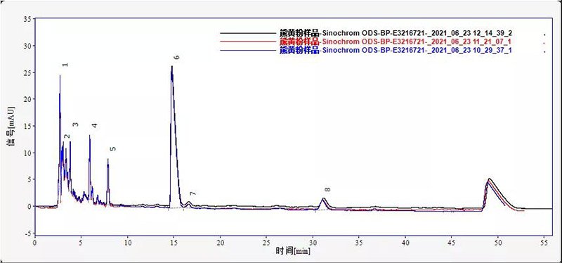 熊膽粉可以清熱,平肝,明目。用于目赤腫痛,咽喉腫痛,其在治療多種疾病方面具有顯著的藥理作用及臨床療效。由于熊膽粉成分比較復雜,且有一定的毒副作用。因此在對熊膽粉藥理作用和臨床應用深入研究的同時,也要對化學成分做進一步的研究。依利特使用EClassical 3200液相色譜儀匹配經典的SinoChrom ODS-BP色譜柱,對熊膽粉樣品的成分進行分析檢測。