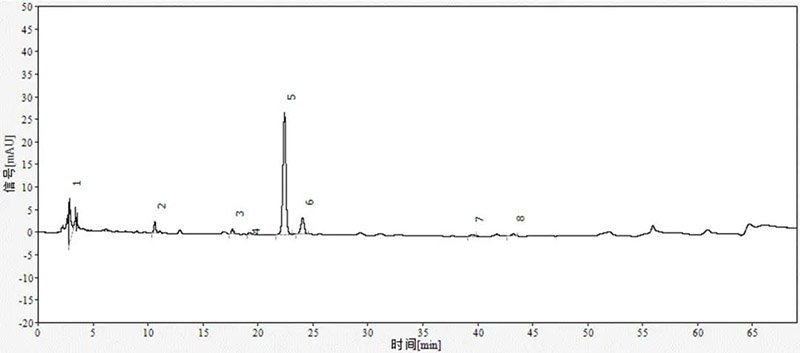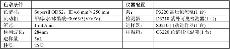 由此可見,使用依利特EClassical 3200高效液相色譜儀以及Supersil ODS2,測得的香櫞配方顆粒的特征圖譜及含量滿足藥典要求。