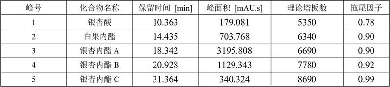 銀杏葉中萜類內(nèi)酯譜圖參數(shù)表